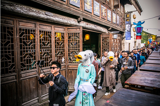 酒香在弥漫,舞台上的表演还在继续,各色鹅还在乌镇的街头巷尾出没。在这座“鹅”影绰绰的岛上,经典文化与创新文化交融,中国文化与外国文化碰撞,小众文化似乎也慢慢成了大众文化。